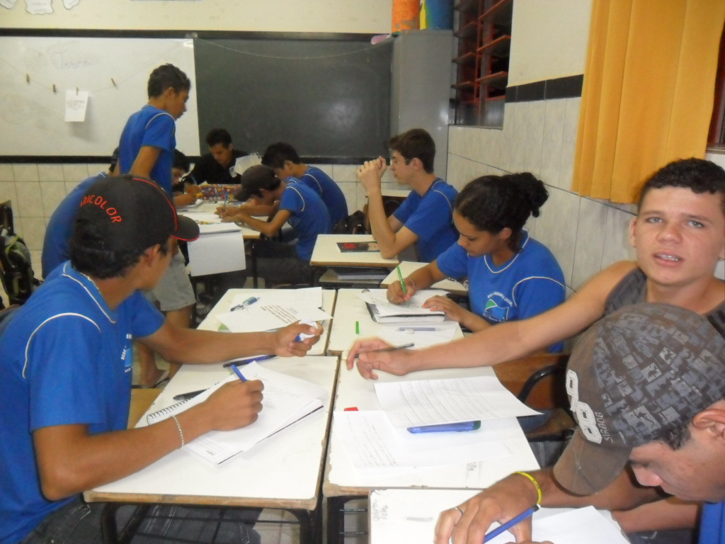 1º Ano B Ensino Médio leu, gostou e trabalhou o livro através de mensagens escritas pelos alunos e discutidas em grupos sobre os temas do livro Tosco. Momentos de debates foram instigantes. Professores aplicadores desta turma: Angela (Inglês) e André (Educação Física). E.E. Japorã. Japorã MS.